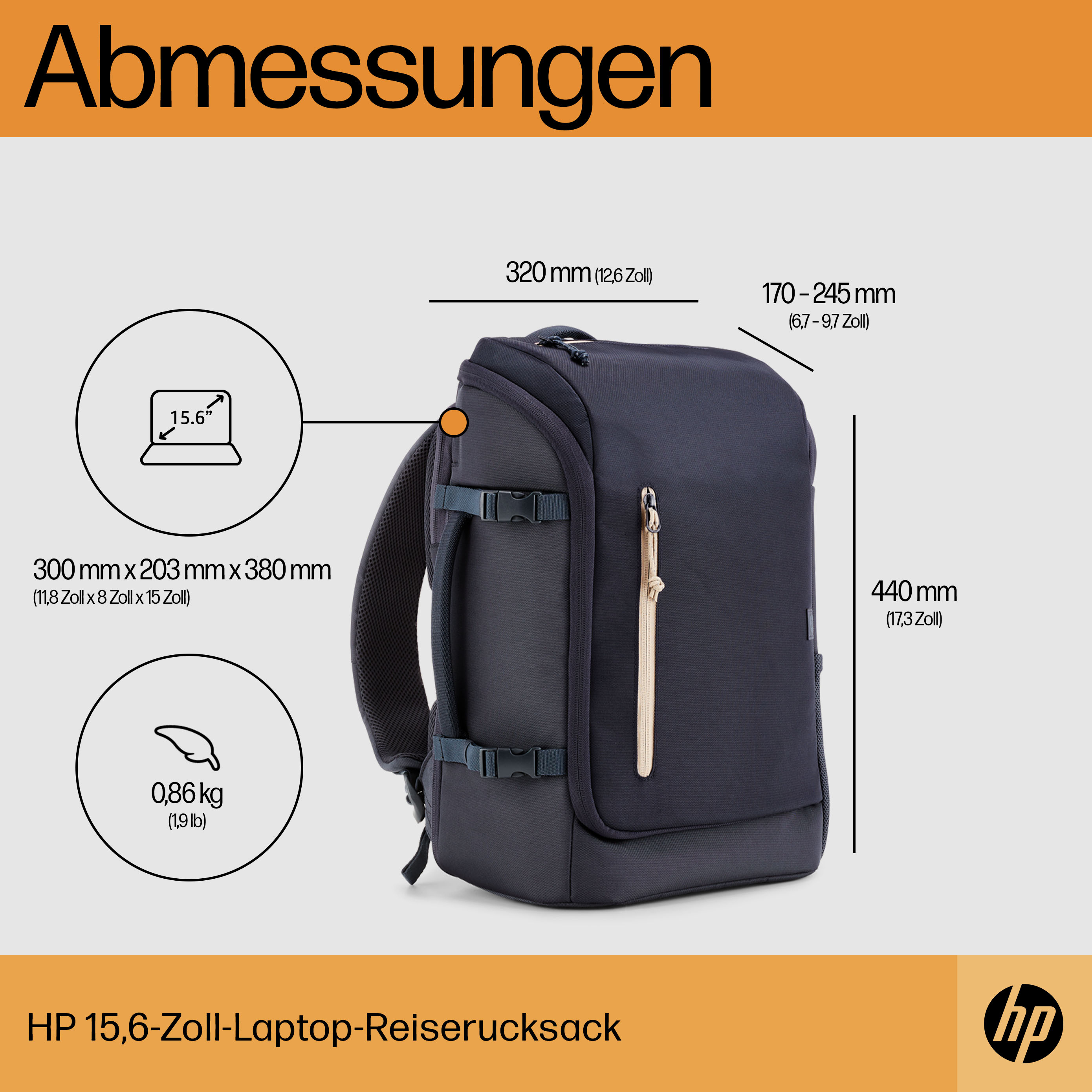 HP Travel Notebook-Rucksack 39.6cm 25L 15,6" Grau
