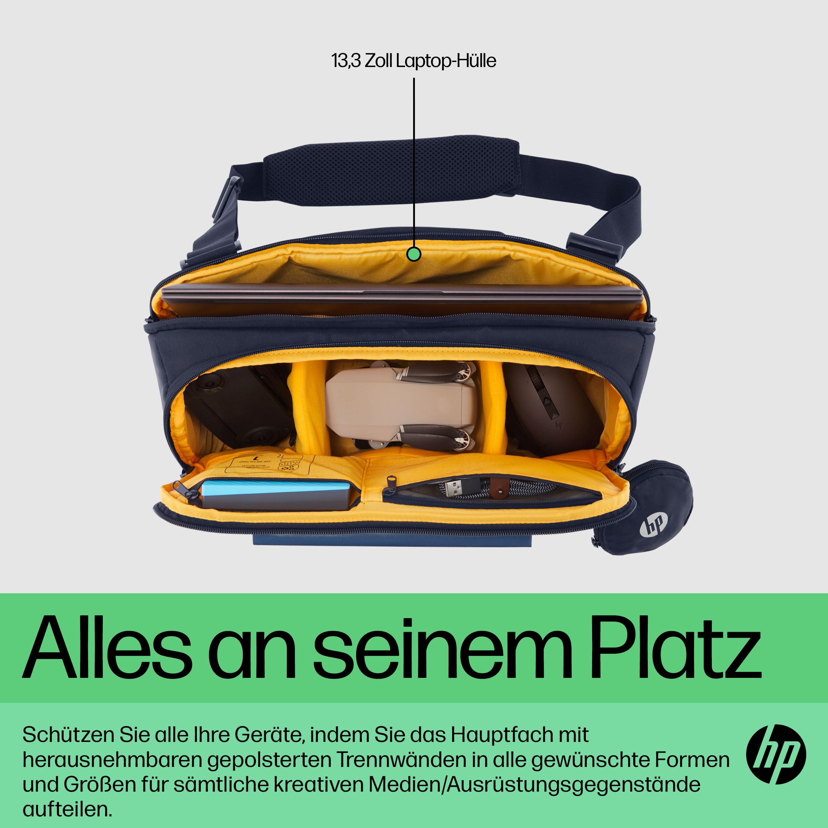 Seien Sie kreativ, wohin Sie auch gehenGanz gleich, ob Sie sich als Profi oder aufstrebendes Talent sehen Sie müssen einsatzbereit sein, wenn Ihre Kreativität erwacht. Greifen Sie sobald die Inspiration erwacht einfach nach Ihrem 13,3 Zoll Laptop oder anderer kreativer Ausrüstung in dem leicht zugänglichen Fach. Mit der wasserabweisenden Abdeckung[1] und der leichten Ausgestaltung sorgt diese Umhängetasche dafür, dass Sie überall spontan kreativ werden können.