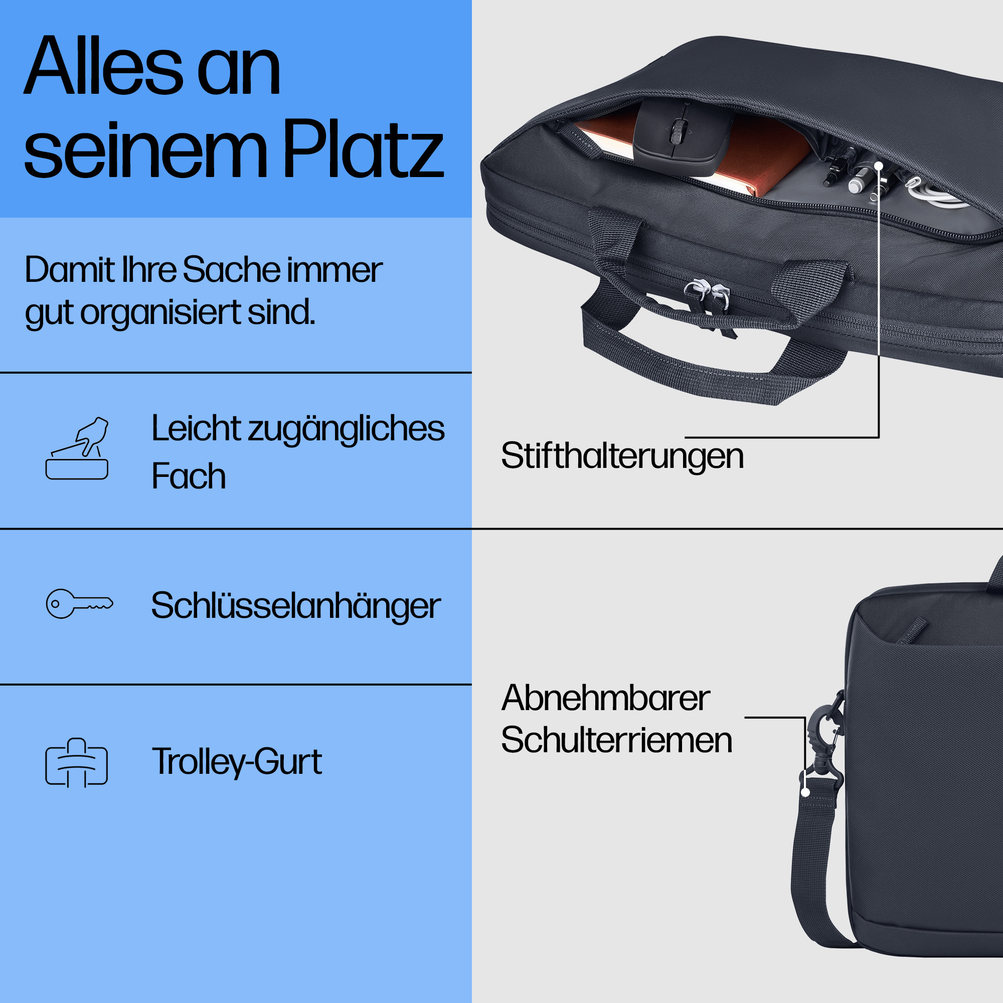 In dieser strapazierfähigen 14-Zoll-Laptop-Tasche sind Laptop und Zubehör unterwegs gut geschützt und organisiert. Diese geräumige Tasche wurde verantwortungsvoll aus recycelten Materialien hergestellt und ist Ihr idealer Begleiter, egal wohin Ihre Reise Sie führt.