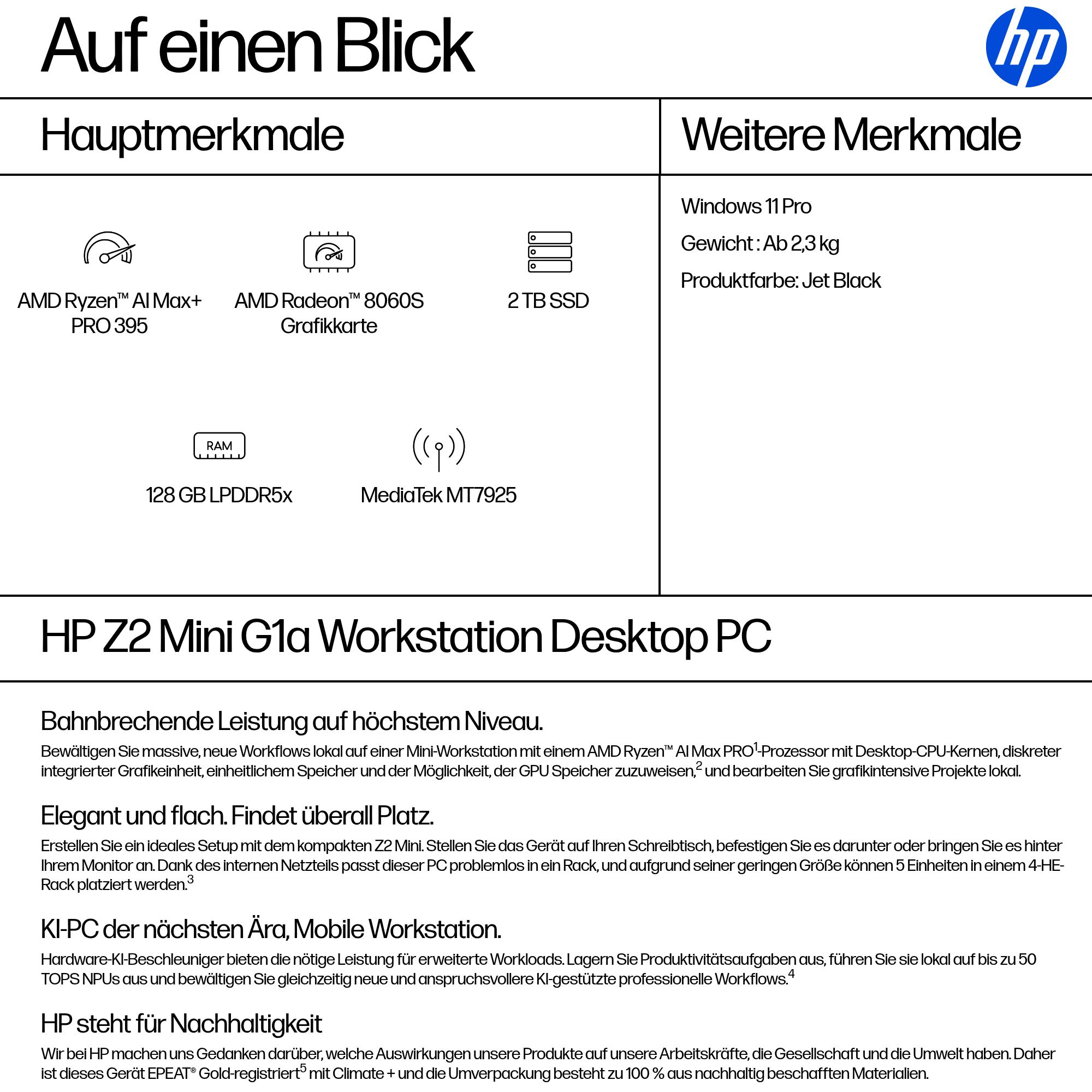 HP Z2 G1a Mini WKS RAIMP-395 128/­2TBSSD WIFI7 W11P 36 Mo