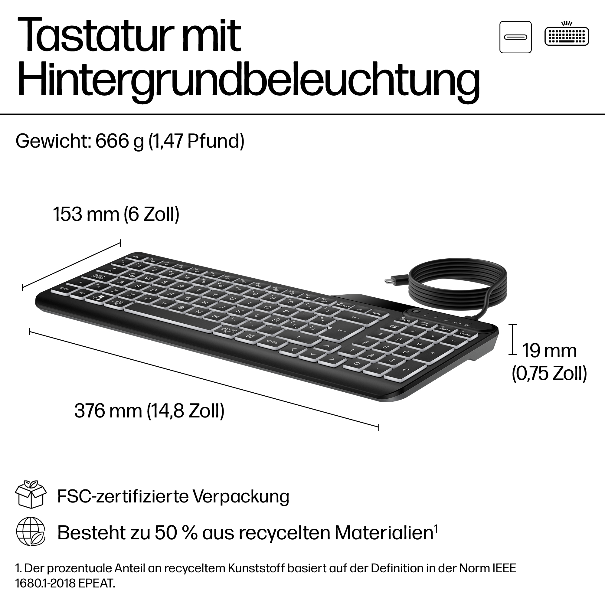 Die 24/7-TastaturMit warmweiß beleuchteten Tasten verpasst diese Tastatur nie einen Takt. Schließen Sie sie an Ihrem Gerät an und arbeiten Sie mit leisen Tasten und einer Hintergrundbeleuchtung durch dreistufig verstellbare LEDs. Steigern Sie ferner Ihre Produktivität mit 12 programmierbaren Tasten. Arbeiten oder gamen Sie den ganzen Tag auf der schlanken und desinfizierbaren[1] HP 405 Tastatur mit Hintergrundbeleuchtung.